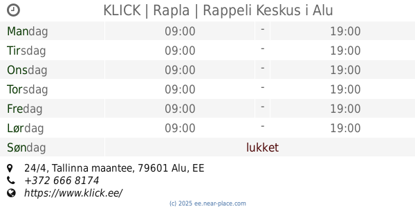 | Søndag | lukket | |||||